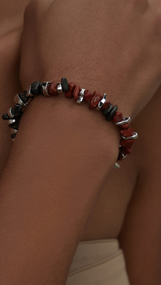 MH_ Irregular Gold Black and Red Crushed Stone Bracelet