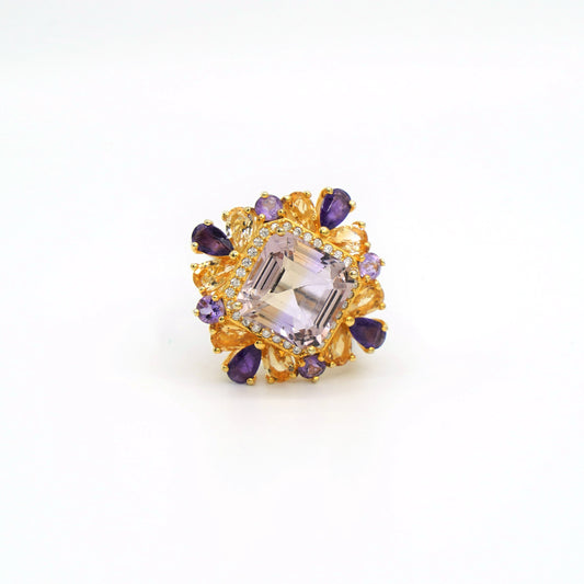 Shiny shiny _ Amethyst Tourmaline Asscher Cut Ring